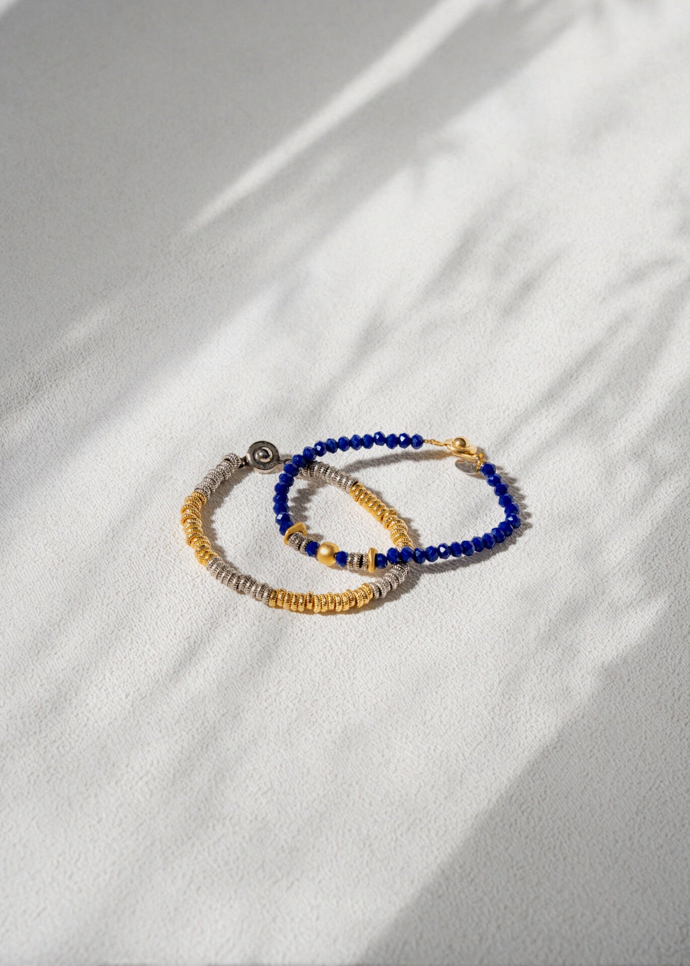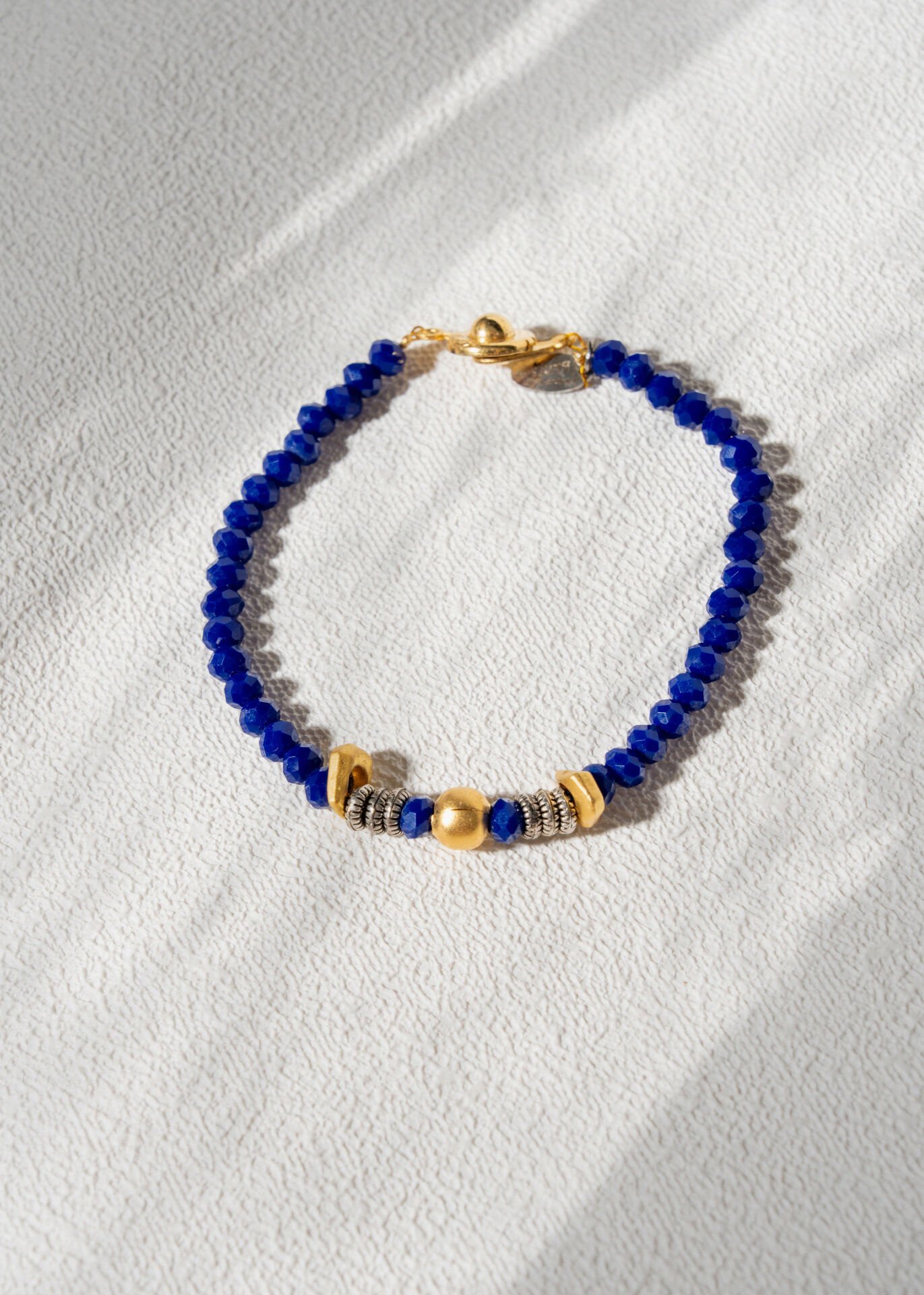 Kristal taş, altın ve gümüş kaplama parçalar kullanılmıştır.