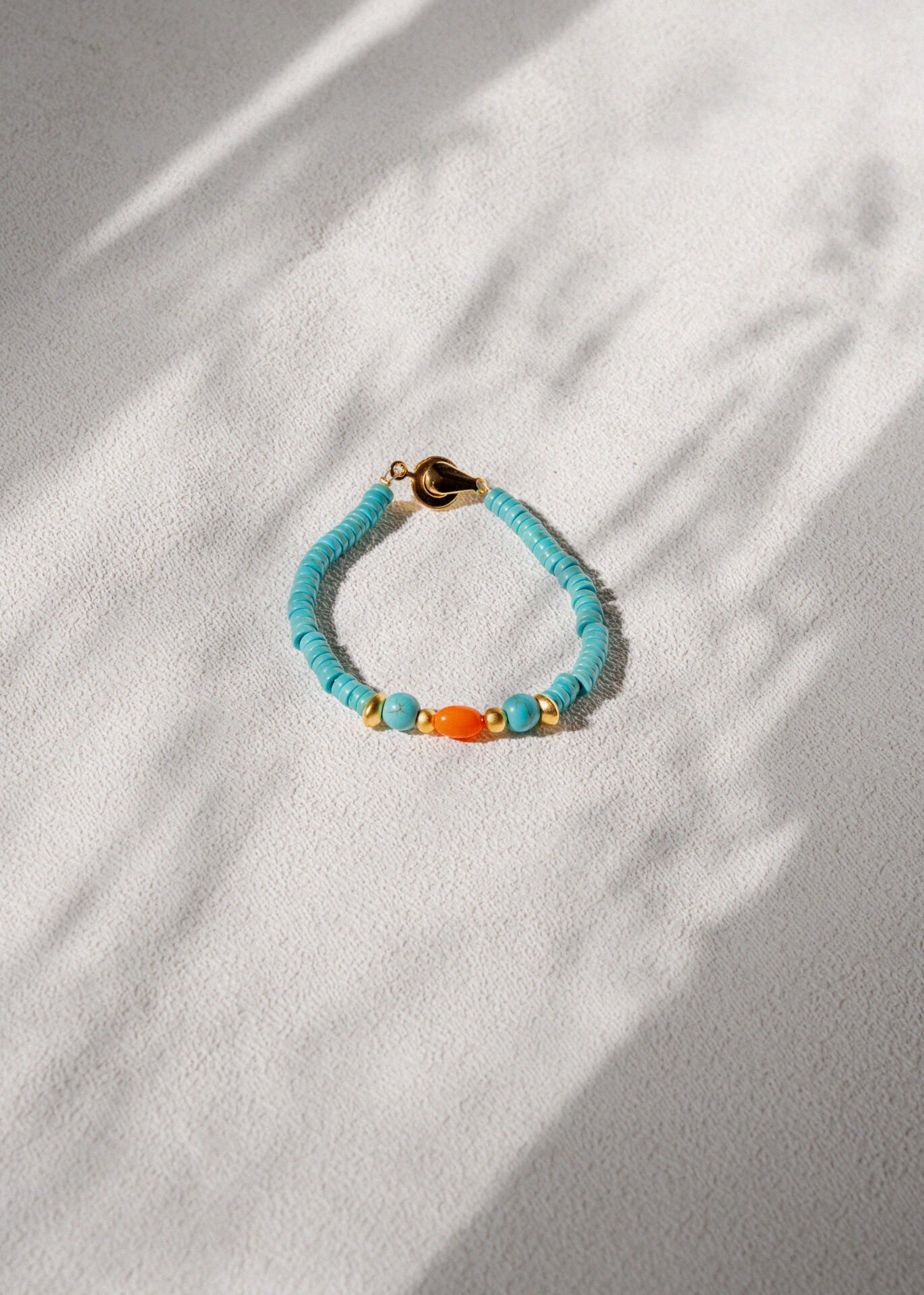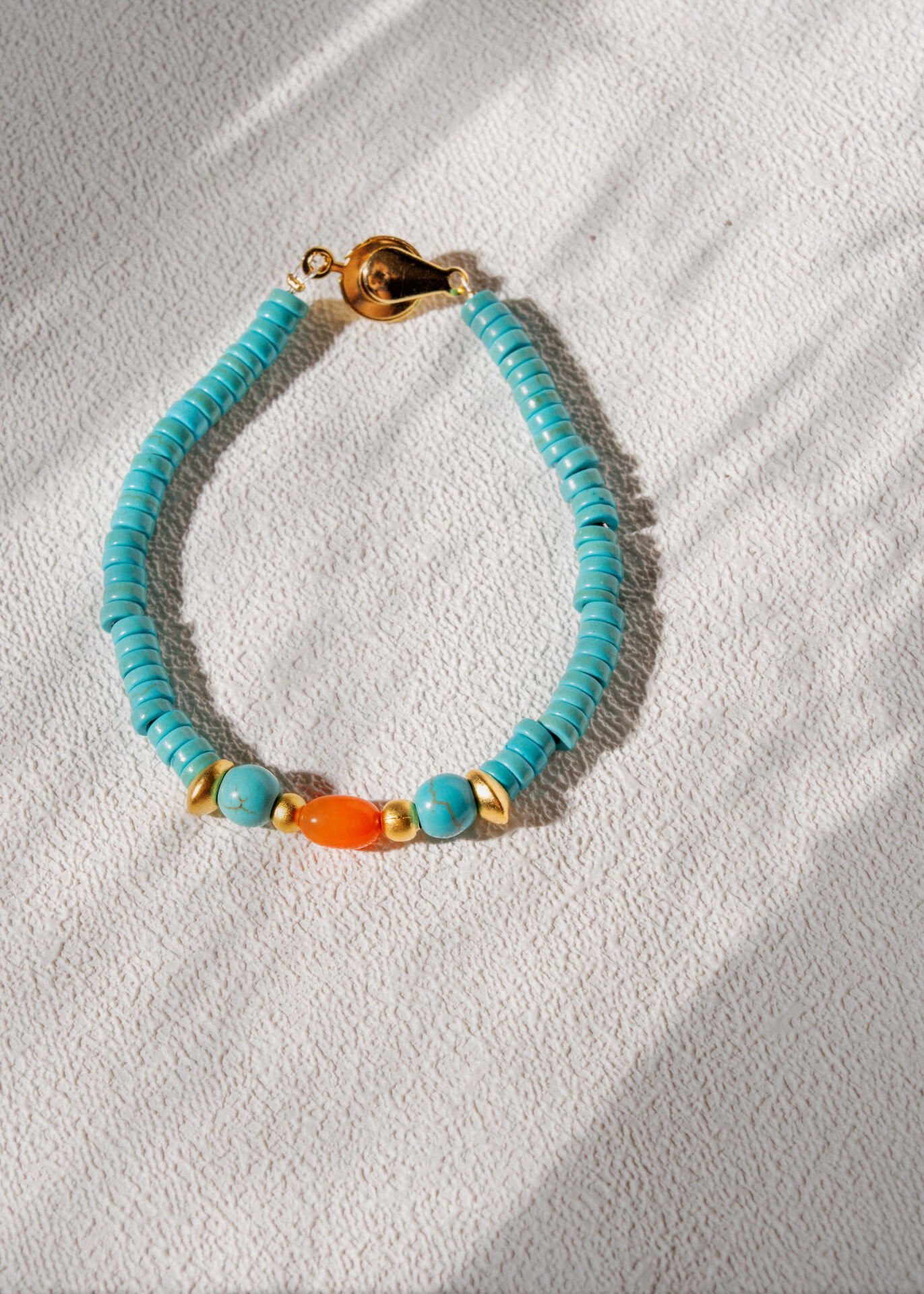 El yapımıi doğal taş ve altın kaplama bileklik.