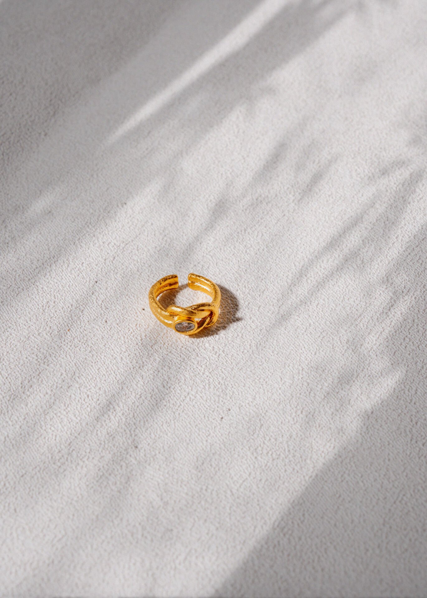 El yapımı ve altın kaplama, kristal taşlı ayarlanabilir yüzük.