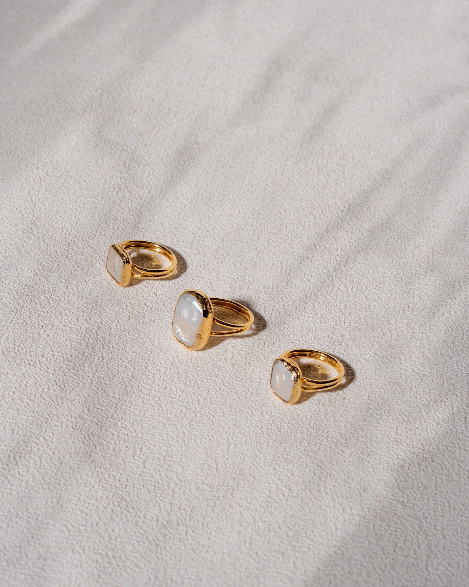 El yapımı ve altın kaplama, barok incili ayarlanabilir küçük boy yüzük.