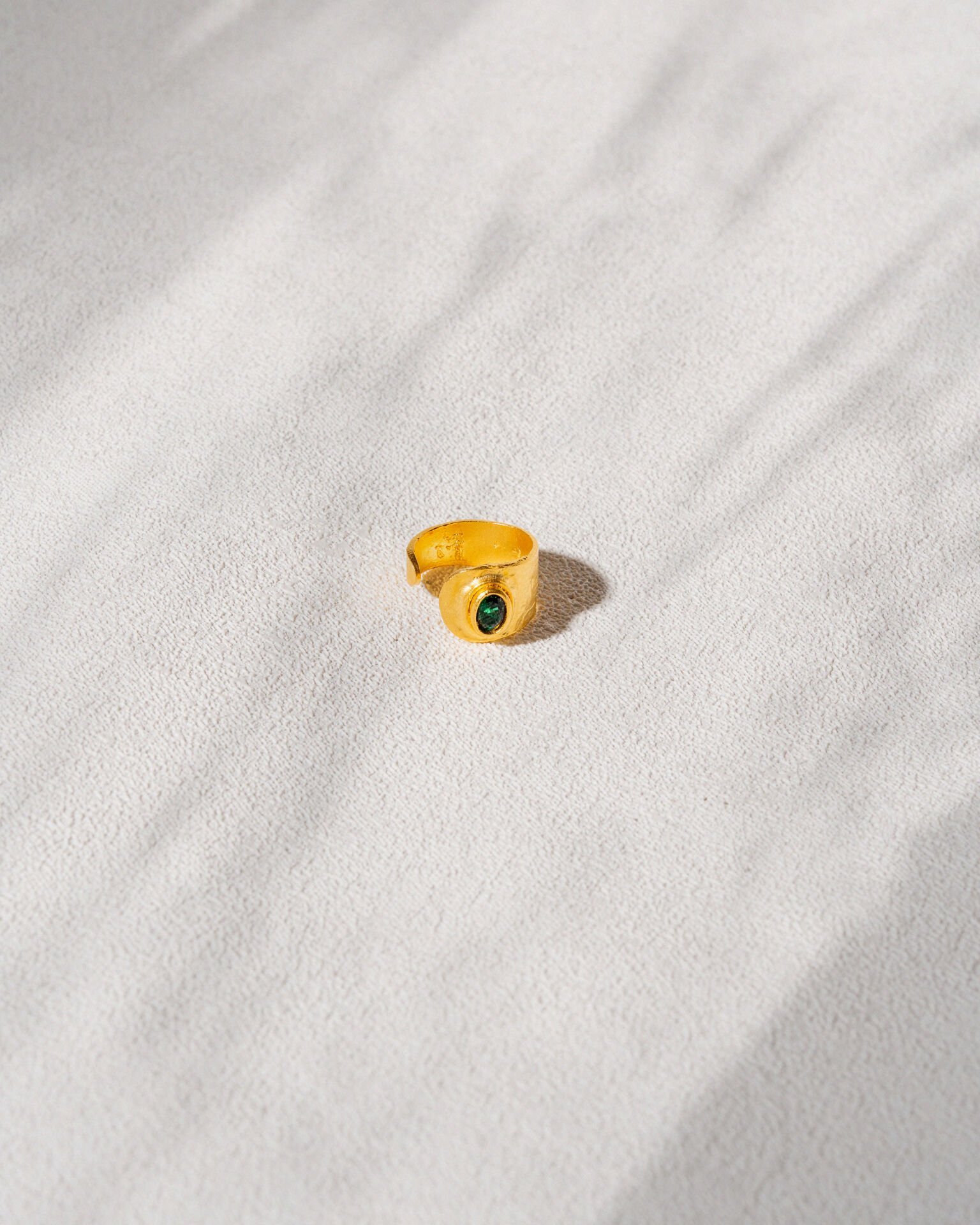 El yapımı ve altın kaplama, yeşil taşlı ayarlanabilir yüzük.