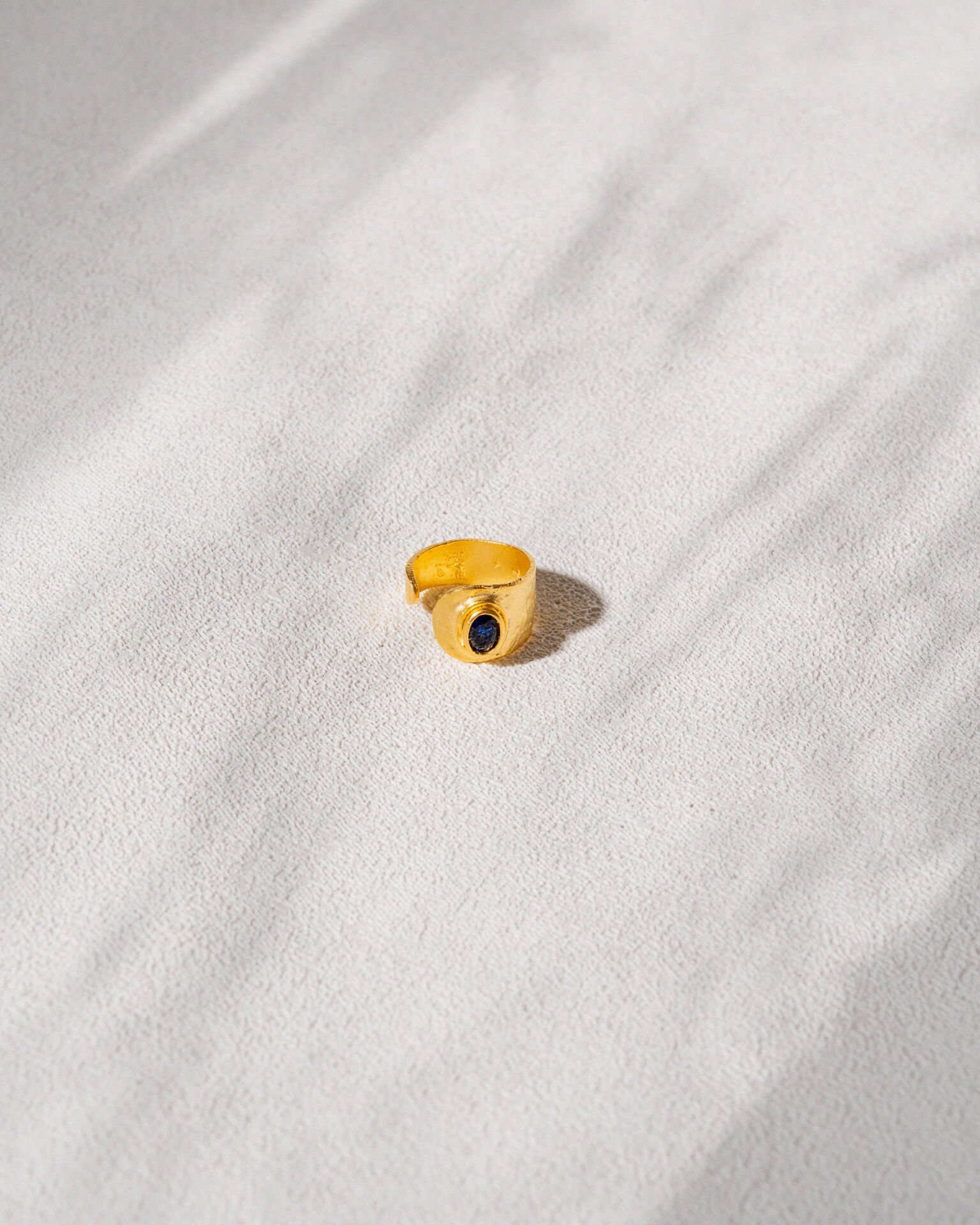El yapımı ve altın kaplama, lacivert taşlı ayarlanabilir yüzük.