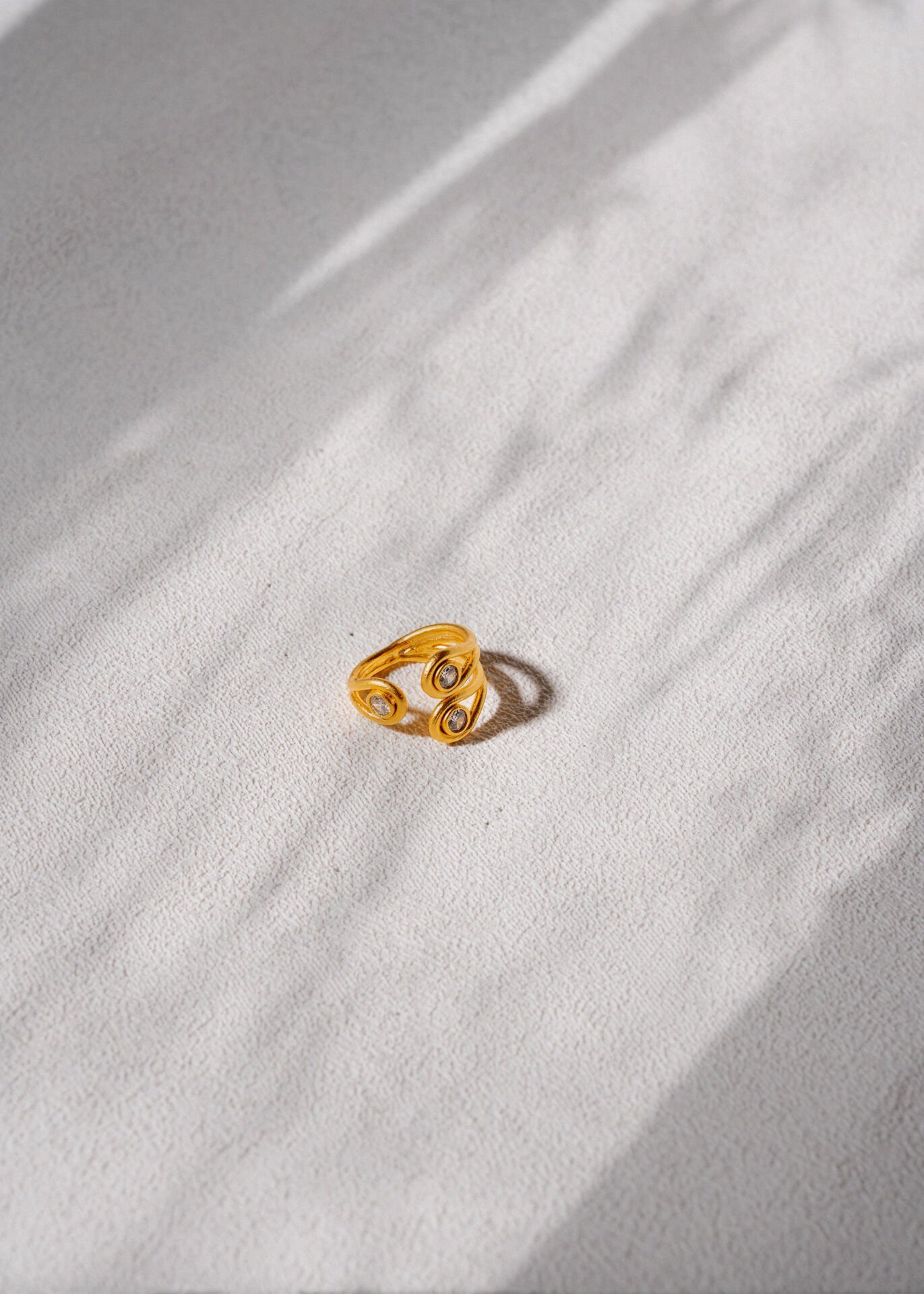 El yapımı ve altın kaplama, kristal taşlı ayarlanabilir yüzük.