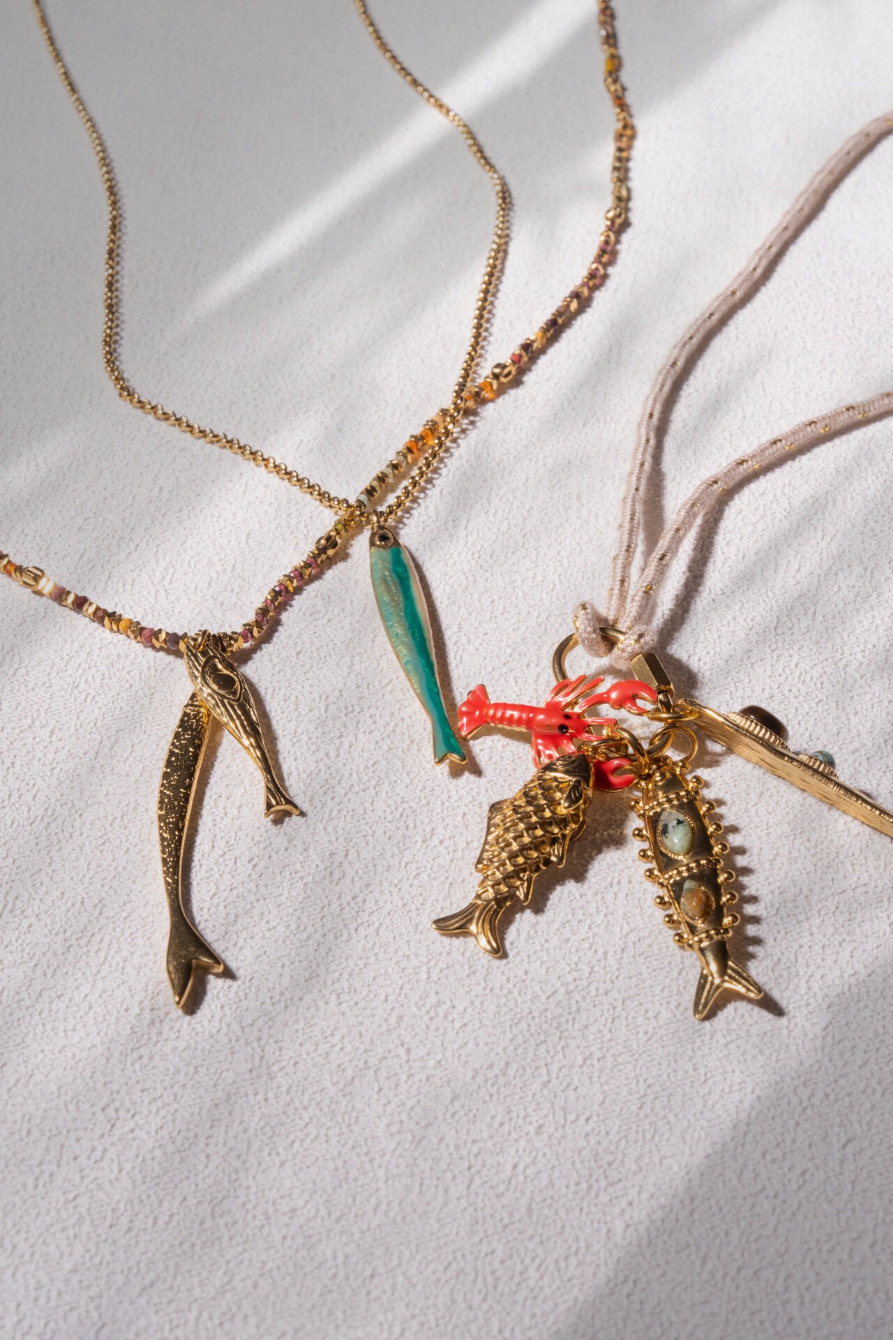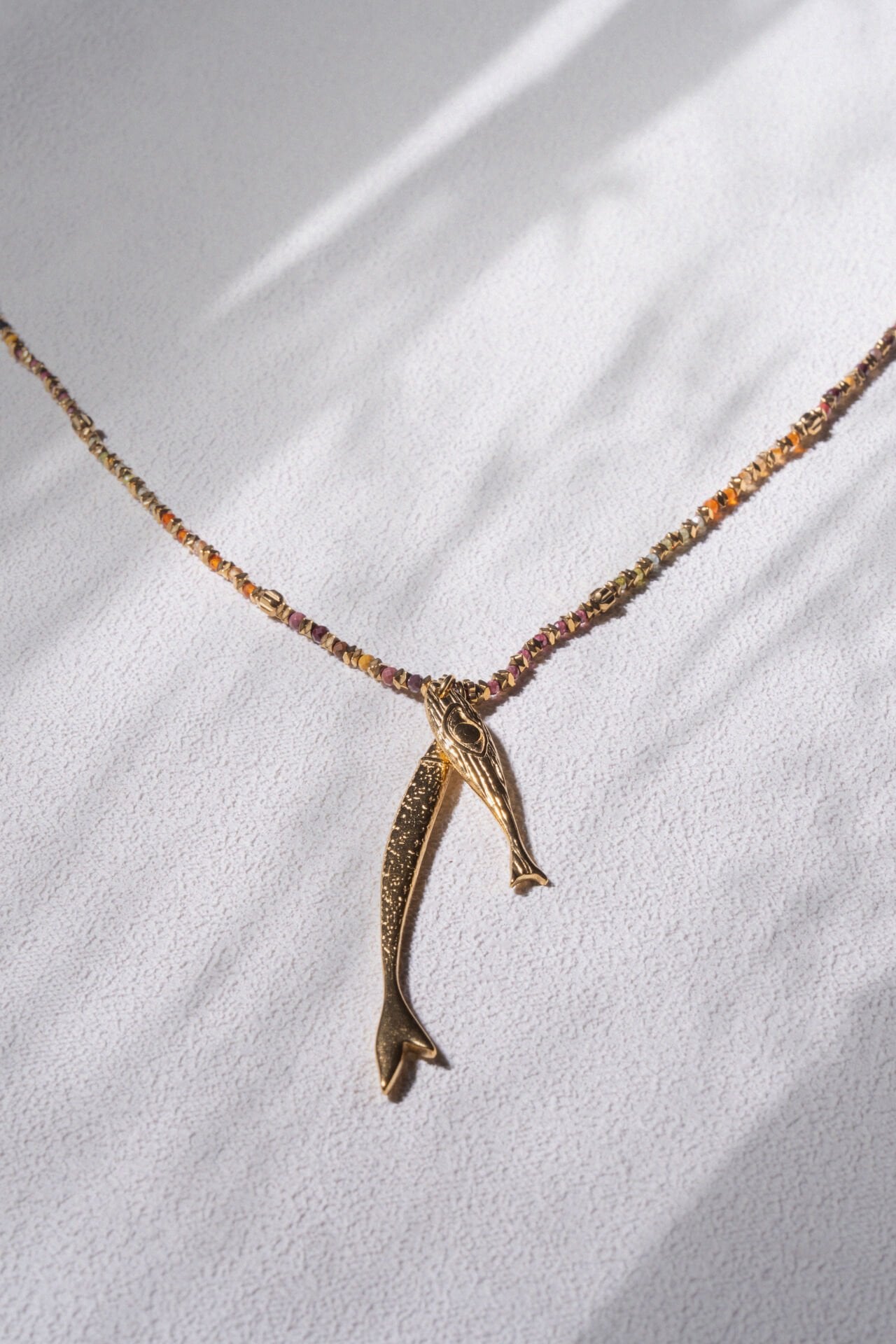 Çelik ve doğal taş uzun kolye.